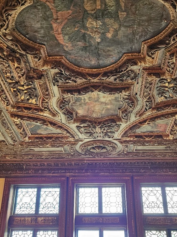 Previously installed in Stanford White's NYC townhouse, these Venetian frescos date back to apporximately 1480 AD. They are the earliest example of Italian Renaissance ceiling murals on canvas in New England.
